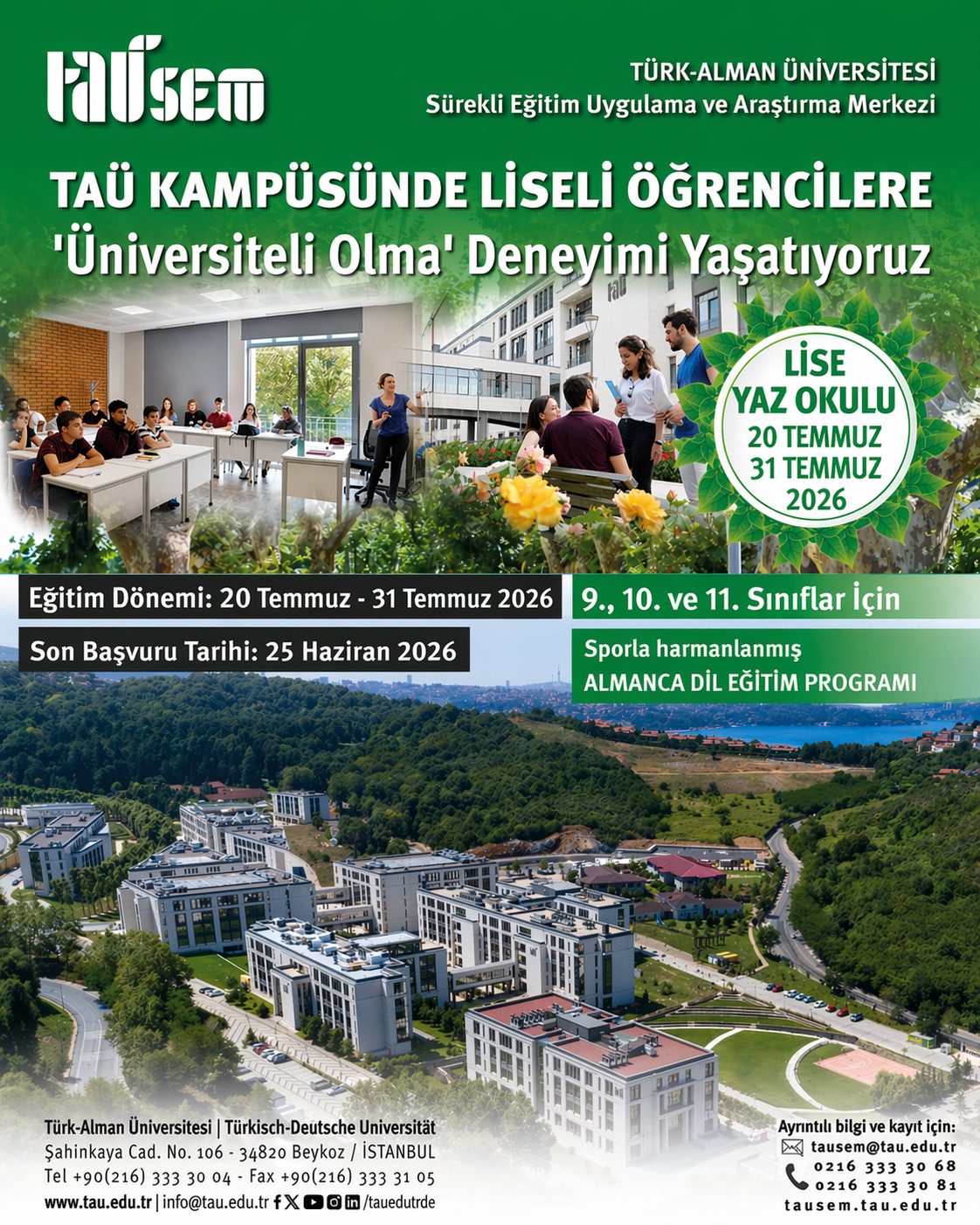 Seviye Belirleme Sınav Dönemi: 26-30 Haziran 2026 (Belirtilen tarih aralığında online olarak uygulanacaktır.)EĞİTİM YERİTürk-Alman Üniversitesi, İstanbul Beykoz Kampüsü